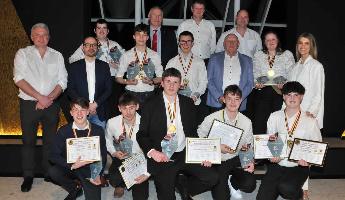 Foto Bertrand Vandeginste : De leerlingen die bekroond werden met een gouden, zilveren en bronzen medaille voor hun coppa en breugelbuffet.